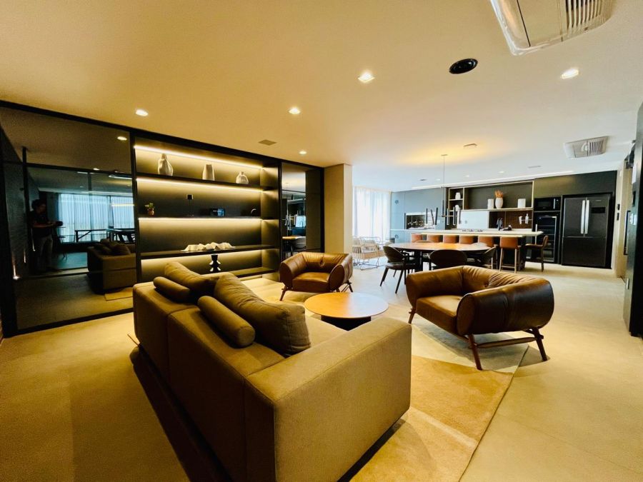 Apartamento moderno e sofisticado, com três suítes, um lavabo e um amplo living integrado, proporcionando conforto e funcionalidade. A cozinha e a lavanderia são bem distribuídas, garantindo praticidade no dia a dia. A sacada conta com churrasqueira a carvão e oferece uma vista magnífica para o rio e o mar, tornando cada momento ainda mais especial. Os banheiros possuem piso aquecido, e as suítes oferecem persianas automatizadas para mais comodidade. O acabamento é de alto padrão, com piso porcelanato na área social e vinílico nos dormitórios, além de gesso rebaixado em todos os ambientes. Conta ainda com espera para split e infraestrutura para água quente. O apartamento dispõe de duas vagas de garagem e um hobby box, garantindo espaço extra para armazenamento.