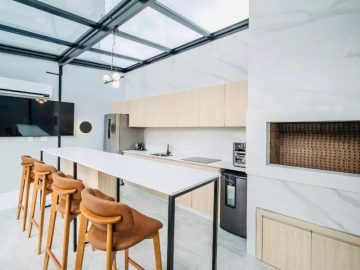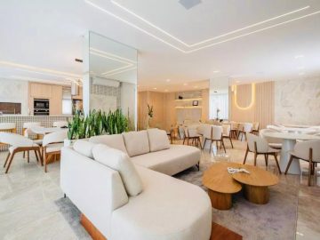 Com design moderno, acabamentos de alta qualidade e ambientes bem distribuídos, este apartamento possui 74m² privativos, perfeito para quem busca conforto e praticidade. O imóvel conta com uma suíte + um dormitório, um banheiro social, living, cozinha e área de serviço integrada, uma vaga de garagem, piso em porcelanato na área social e vinílico na área íntima, teto com rebaixo em gesso, infraestrutura para ar condicionado e aquecimento a gás, fechadura eletrônica e uma bela sacada com churrasqueira a carvão, ideal para momentos de lazer.